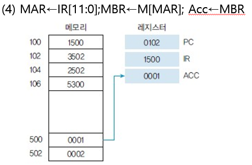 | ADD (Add) | 3 | 누산기의 내용과 메모리의 내용을 덧셈 (누산기에 저장) |
