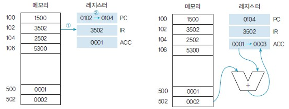 | 0102 | ADD 502 | 3502 | 누산기의 수 + 502번지의 수 |