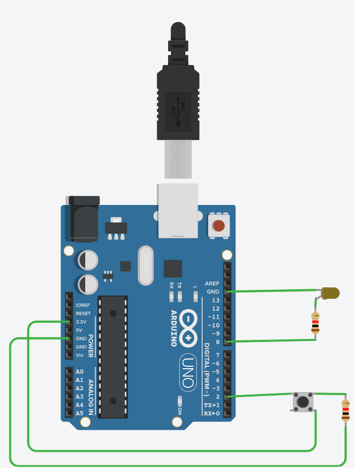 + 2, 3번 포트만 Interrupt를 사용할 수 있으므로 스위치를 2번 포트에 연결한다.