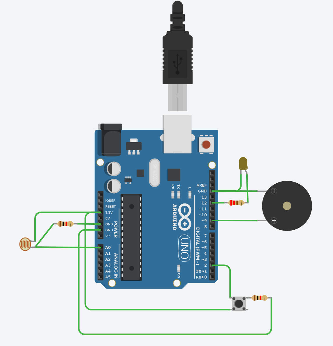 + 한국항공대학교 최차봉 교수님의 임베디드 SW 과목 내용을 정리한 글입니다. < 첫 번째 실습 - Morning Alarm 제작 > TinkerCad를 이용하여 "Morning Alarm"을 제작하라 - 아침이 밝아 빛의 양이 일정한 수치
