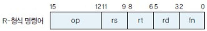 rs(register source)와 rt(register target)로 연산(fn + op)하여 rd(register destination)에 저장한다.
