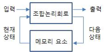 현재의 입력과 기억소자의 상태(값들)에 따라 출력이 결정된다.