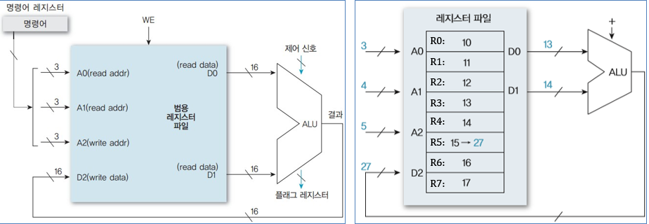- 레지스터 주소는 3bit, 레지스터 데이터는 16bit이다.
