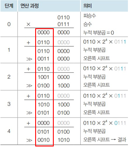 부분곱의 개수는 승수를 구성하는 비트 수와 동일하다.