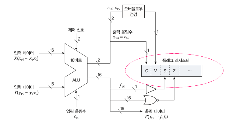 - 입/출력 올림수는 산술장치에만 각각 입력되고 출력된다.