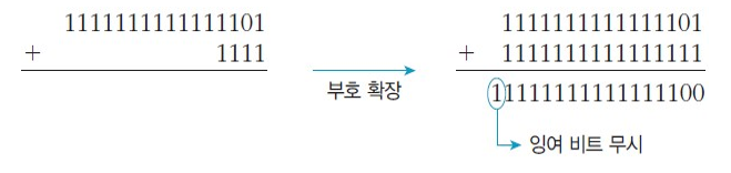 부호 확장을 통해 동일한 비트 수로 변환해야한다.