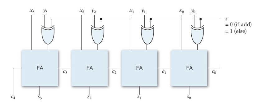 s는 제어신호로 뺄셈일 경우, 2의 보수 처리를 위해 +1을 갖는다.