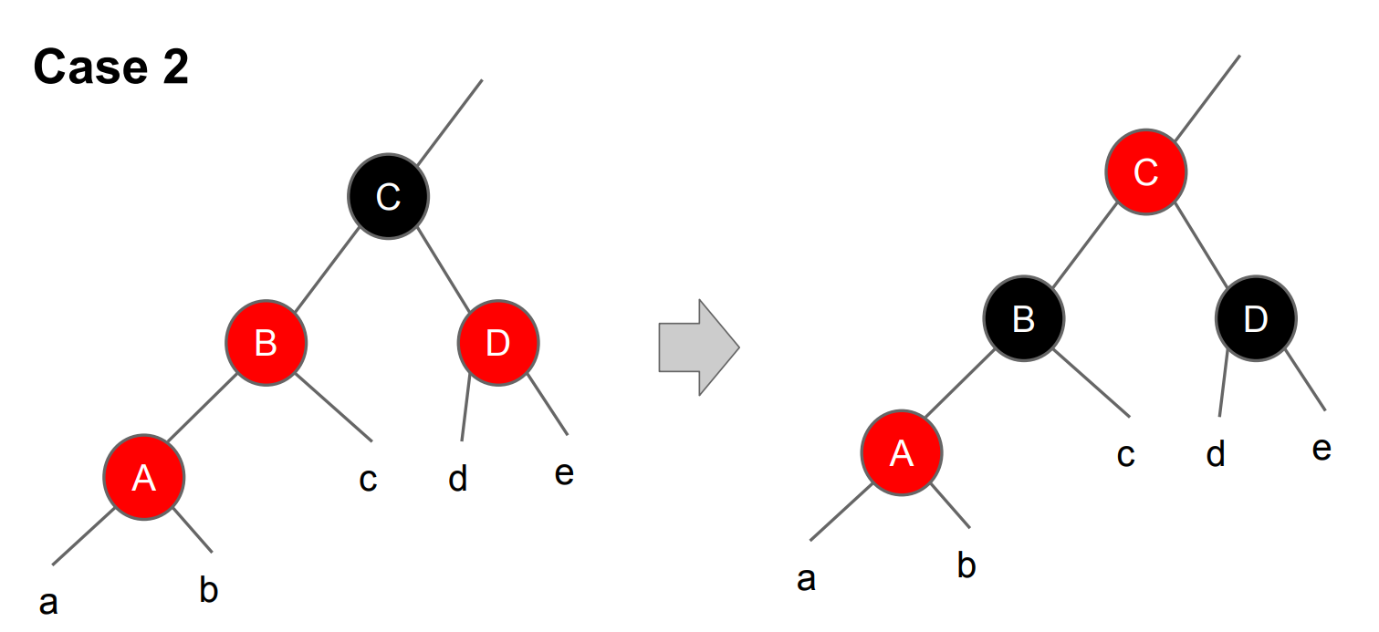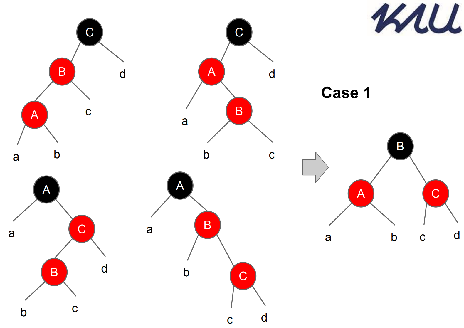 + Special Case: 만약 C가 루트라면, C를 Black으로 바꾼다. (규칙을 어기지 않는다.)