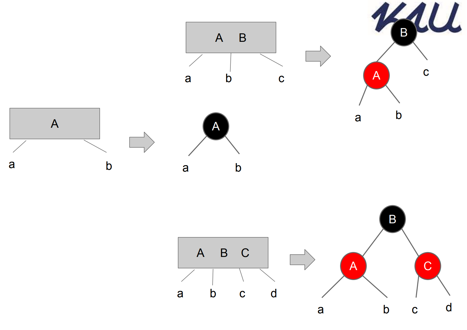 Red - Black Tree는 2-3-4 Tree를 이진 트리로 표현한 것이다.