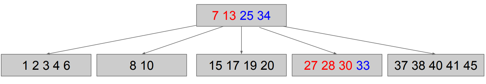 ex) 33은 25와 34 사이에 존재하므로 4번째 노드에 방문한다.