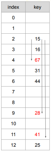 h(28) = h(41) = h(67)