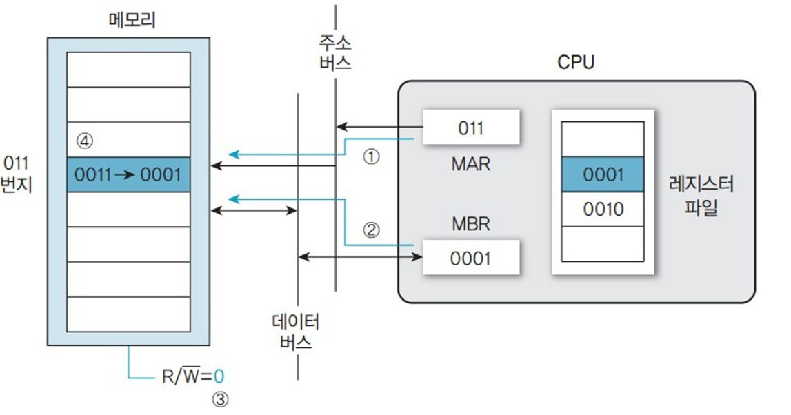 - store 명령어: 메모리에 쓰기 위해 0을 전송한다.