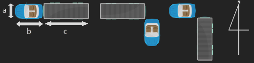 너비가 a이고 길이가 b인 차와 너비가 a이고 길이가 c인 캠핑카가 있다.