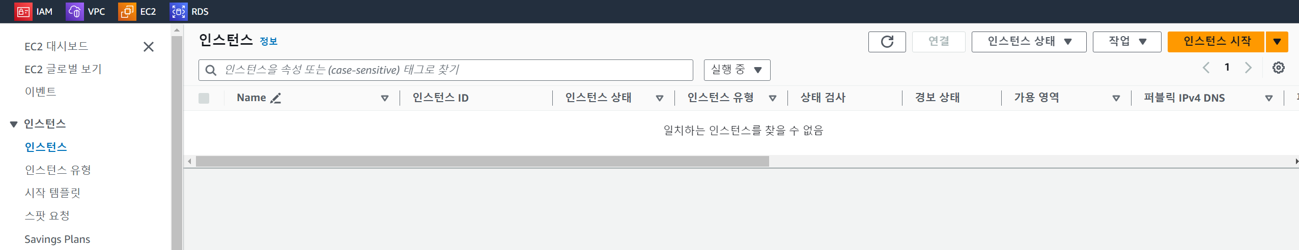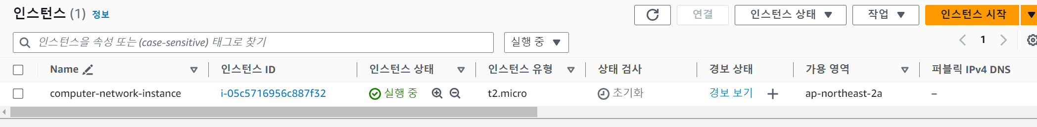 이제, 인스턴스 시작 버튼을 눌러 EC2 인스턴스를 생성합니다.