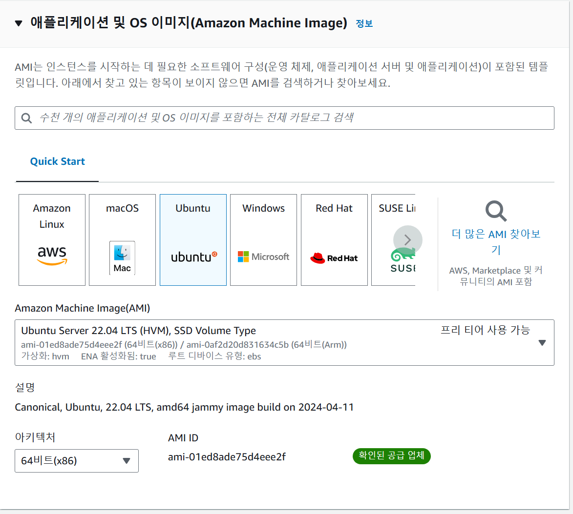 리눅스 환경을 위해 Ubuntu 22버전을 사용합니다. (프리티어 사용 가능)