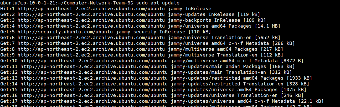 sudo apt update 명령을 통해 Linux 배포판에서 패키지 관리 시스템을 최신 상태로 갱신합니다.
