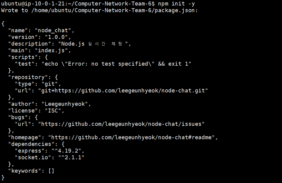 npm init -y 명령을 통해 node.js 프로젝트를 초기화합니다.