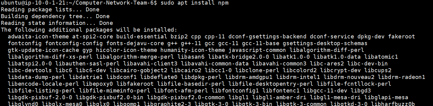 sudo apt install npm 명령을 통해 npm을 설치합니다.
