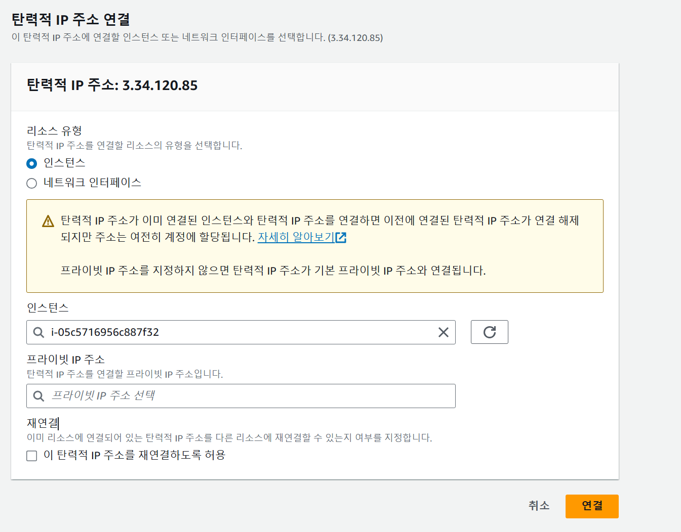 탄력적 IP 주소 연결