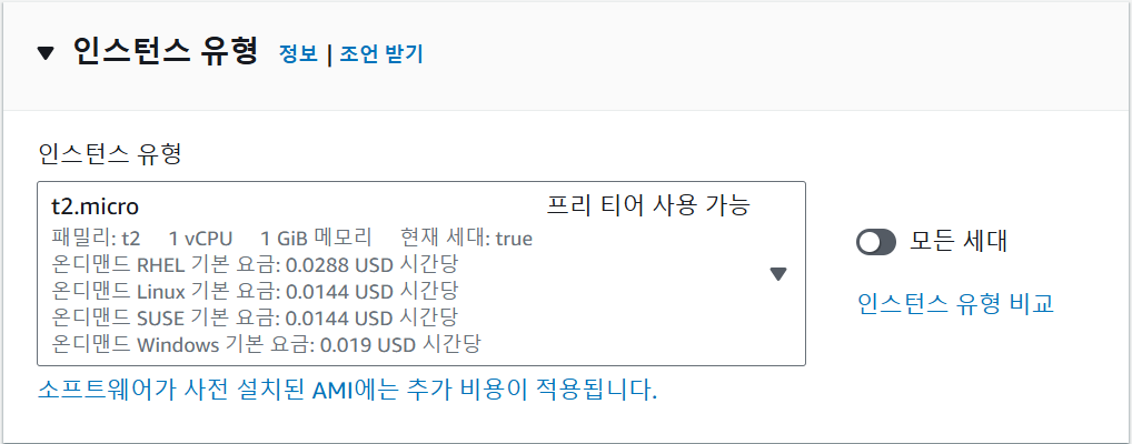즉, 인스턴스 유형이란, 컴퓨터 사양을 의미한다.