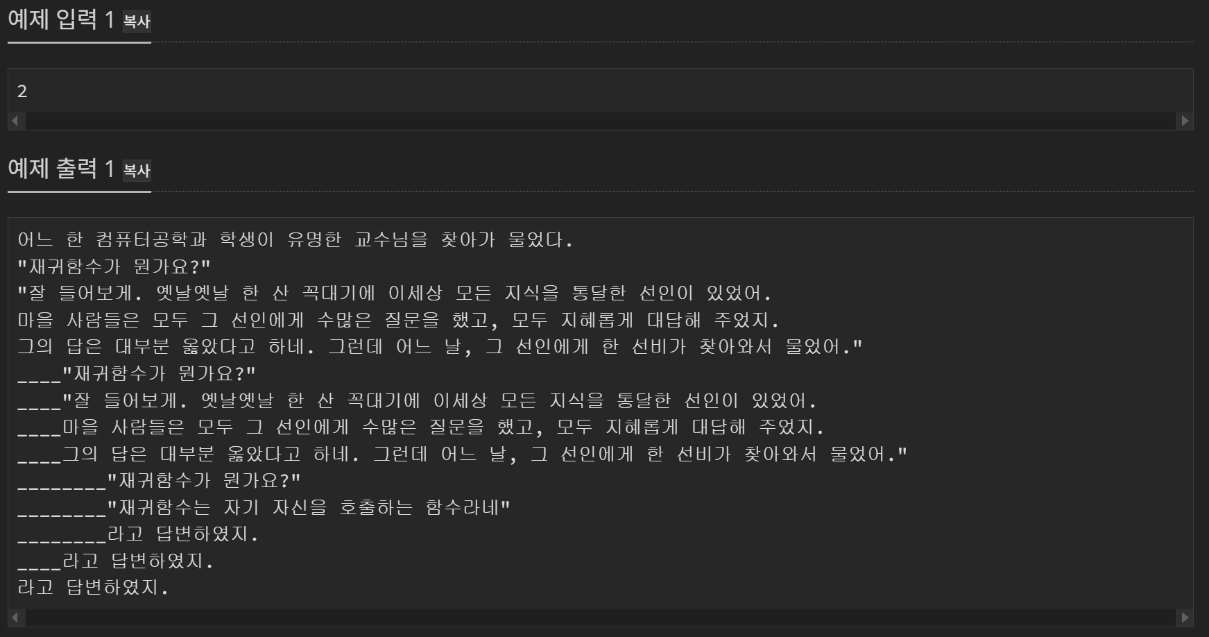 재귀 횟수 N이 주어질 때, 챗봇의 응답 결과를 출력한다.