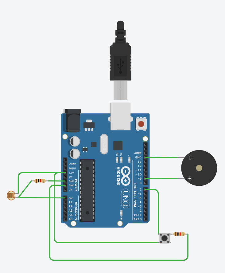 - 아침이 밝아 빛의 양이 일정한 수치 이상이 될 때, "Alarm Enabled"상태면 음악을 재생하고 2초 후에 반복한다.